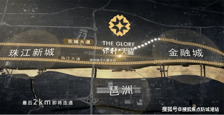 全维路网—临江大道、花城大道、过江隧道连接珠金琶;便捷地铁—员村站上盖,5号线三站珠江新城站,11号线1站即达琶洲;
