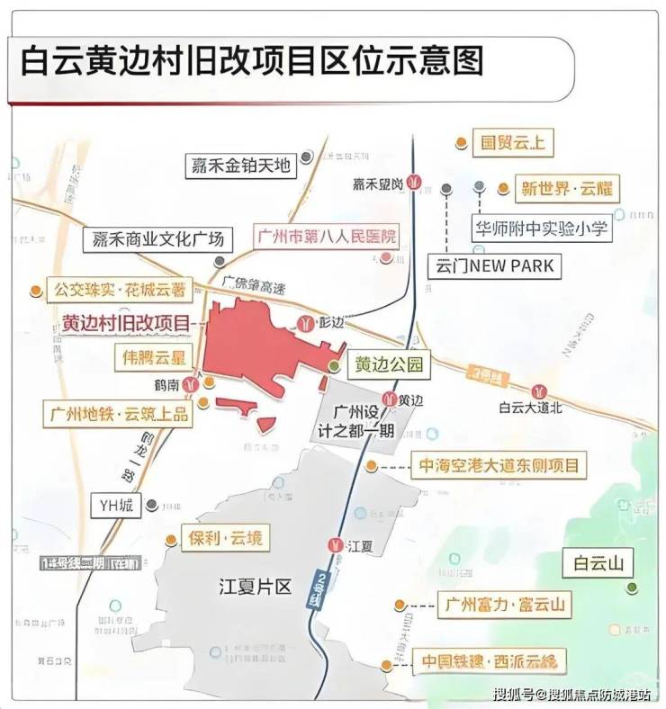 * **【地段与资源】**:位于白云主轴设计之都,2号线黄边站距离项目约750米,14号线彭边站仅250米。周边时光汇、云门NEW PARK等多个大型商业综合体环绕。临近约2.6万方黄边艺术公园,且周边还有多个主题公园。