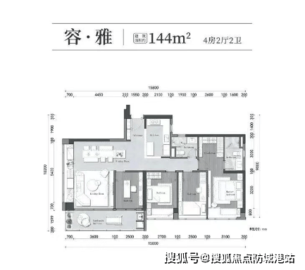 175㎡四房两厅三卫:东南向双主套房设计,卧室配备270°景观,视野开阔。