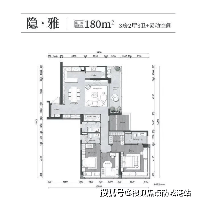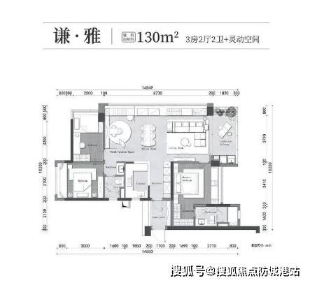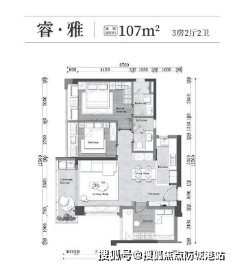 105/128㎡三房两厅两卫:采用LDK一体设计,半开放式厨房,大阳台设计,提升居住舒适度。