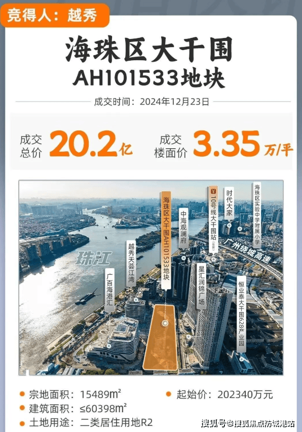 在时光的长河中,城市的每一次跃迁,都伴随着地标的崛起与生活方式的迭代。广州,这座千年商都,依水而生,因水而兴。从早期的沿江居住,到后来的临江而居,再到如今追求极致的“拥江入怀”,广州的人居理念正在经历一场深刻的变革。2024年岁末,一则重磅消息震撼了羊城楼市:越秀地产以超20亿元的总价,竞得海珠区大干围AH101533地块,折合楼面价高达33501元/平方米。这不仅是一宗土地的易主,更是一个时代的号角。在这片承载着无限可能的土地上,一座集“巨幕江景”、“超级底盘”与“先锋产品”于一身的滨江豪宅——越秀·江湾潮起,正蓄势待发,宣告着广州滨江人居3.0时代的正式来临。