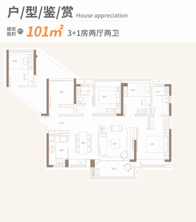 108㎡四房:双阳台设计,客厅开间4.2米,可改造成“3+1”房;
