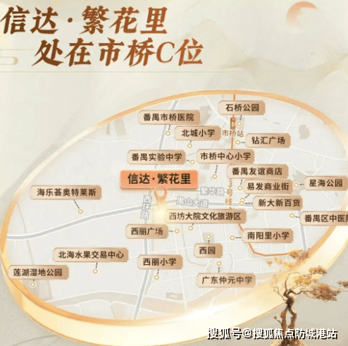 交通上,信达繁花里虽距离 3 号线市桥站约 1.3 公里,步行需 20 分钟起,需借助公交或电瓶接驳,但乘坐 3 号线可快速抵达珠江新城、体育西等多个 CBD,还能 1 站到番禺广场,接驳 18/22 号线,畅享 “湾区最快地铁” 便捷。周边禺山大道、西环路等干道纵横,可接驳东新高速、新光快速,自驾出行方便,畅达荔湾海珠、万博 CBD、珠江新城 CBD 等地。规划中的 26 号线若设禺山大道站,项目未来或升级为地铁上盖,交通便利性将大幅提升。