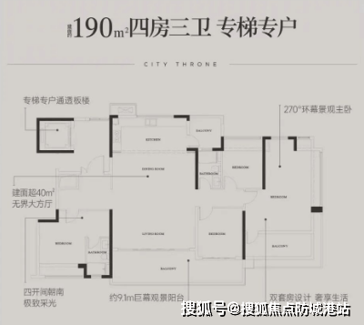 T5 栋楼王为独栋单边位板楼,建面约 240㎡,南向且三面采光,专梯专户设计。分为东边户、西边户两个户型,共 29 层,3 层起步,约 54 套货量。西边户户型拥有双套房、南北双阳台与中西厨,享有 270° 云山观景面,约 21 米的景观视野,可饱览西面白云山、南向广州中轴与园林、北向白云山与园景。
