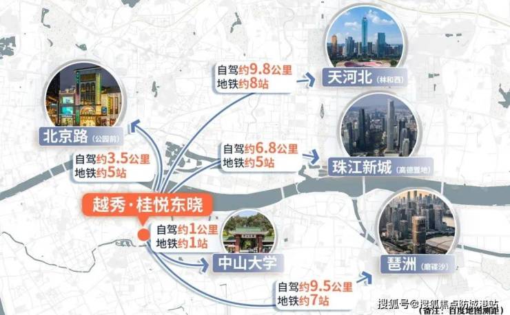 主干道:五大主干道串联主城,距离约8公里内(约20分钟)通达珠江新城和琶洲。