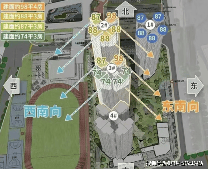 目前项目主要在售的是二期的74-98㎡全南向三房和四房户型,以及一期116㎡的小高层四房户型。具体的价格分布如下: