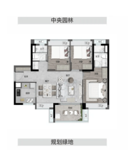 1. 81㎡三房一卫户型:该户型为低总价三房产品,性价比突出,适合刚需家庭入手。户型朝向为北向,主要观赏园林景观,推窗即可感受中央园林的绿意盎然。大飘窗设计是该户型的亮点之一,不仅增加了室内采光面积,还拓展了使用空间,可作为休闲阅读或储物区域,进一步提升居住舒适度。