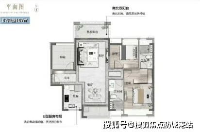 双阳台双景观设计,空间宽敞,布局精细,适合二胎或三胎家庭。