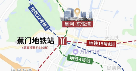 星河东悦湾地处南沙区的核心地带,距离南沙区政府仅300米,周边甲级写字楼林立,形成了浓厚的商务氛围。项目地理位置优越,交通便捷,距地铁4号线蕉门站约610米,步行大约需要10分钟。未来,随着规划中的15号线和建设中的22号线的开通,居民将能更加便捷地抵达庆盛高铁站,进一步连接深圳、香港等湾区核心城市。此外,自驾出行也十分方便,通过市南大道和进港大道可以快速换乘南沙港快速、广澳高速、广龙高速,实现一小时内畅达大湾区城市群。