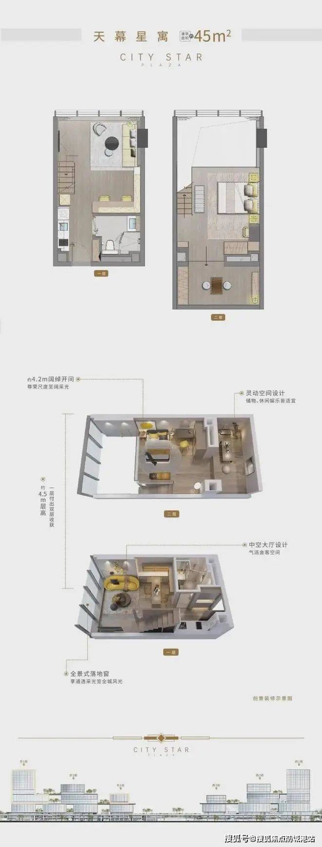 约45㎡户型,约4.2米阔尺开间金领小户型,低门槛轻松买入地铁上盖物业,适合投资或自住。