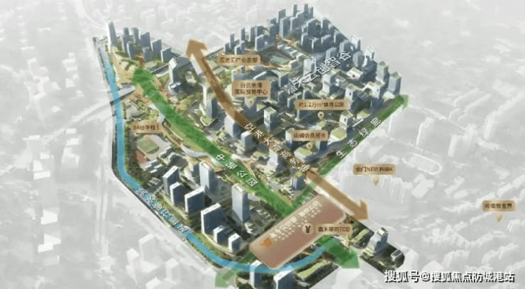 4. **生态宜人**:项目虽处城市核心,但生态环境丝毫不逊色。社区内部采用抬高设计,盖板上规划错落有致的绿化景观,戏水池、廊架、休憩平台、大草坪、儿童乐园等景观节点贯穿其中,营造出舒适的社区微环境。外部依托白海面涌生态主轴,规划滨水慢行廊道,沿嘉禾望岗上盖设施打造景观化中轴公园(非项目配建,以政府公示为准),形成“水岸共生”的生态格局。居民茶余饭后可沿滨水廊道散步,或在中轴公园休闲健身,清新的空气与静谧的环境有效缓解都市压力,让生活在繁华与自然间找到平衡。