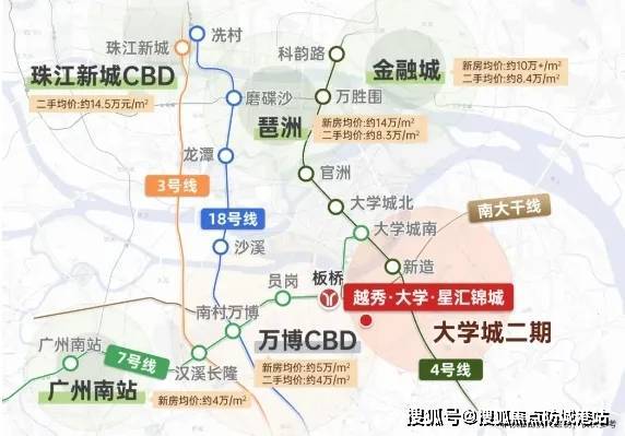 同区域竞品:万博板块新房均价45000元/㎡,琶洲板块均价60000元/㎡,越秀星汇锦城价格优势显著。