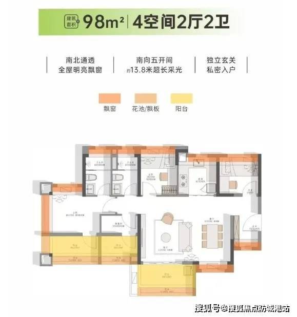 空间设计:四开间朝南,主卧南北对流,阳台可俯瞰8500㎡中央公园。采用“飘窗+阳台+花池”全赠送设计,实际使用率超100%。