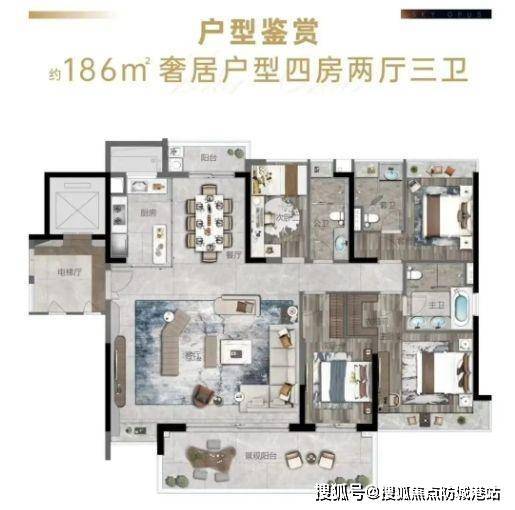 186㎡大平层:奢阔尺度,双主套设计,270°瞰山视野,配备华为全屋智能家居系统,科技感与舒适度兼备。