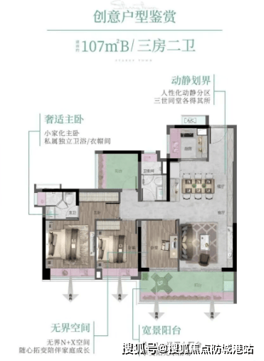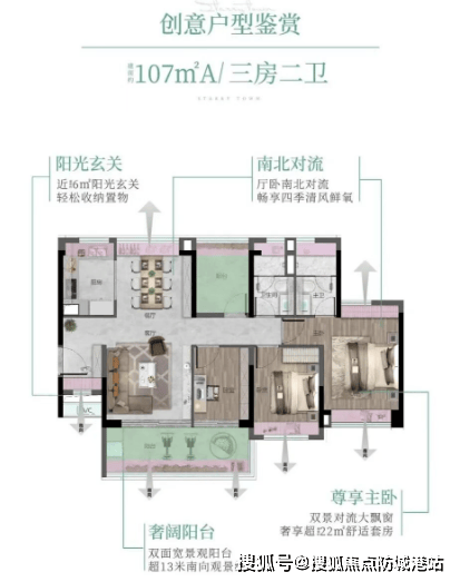 越秀大学星汇城推出的户型设计考虑了空间利用率与居住舒适度的平衡。以88平方米的三房两厅两卫为例,该户型拥有罕见的四面宽设计,所有卧室均朝南,超长的景观线确保了充足的阳光照射。而107平方米的户型则更加注重家庭互动空间的设计,客厅与主卧南北对流,增加了空气流通性。此外,双面宽观景阳台不仅扩展了视野范围,也提升了生活的品质感。