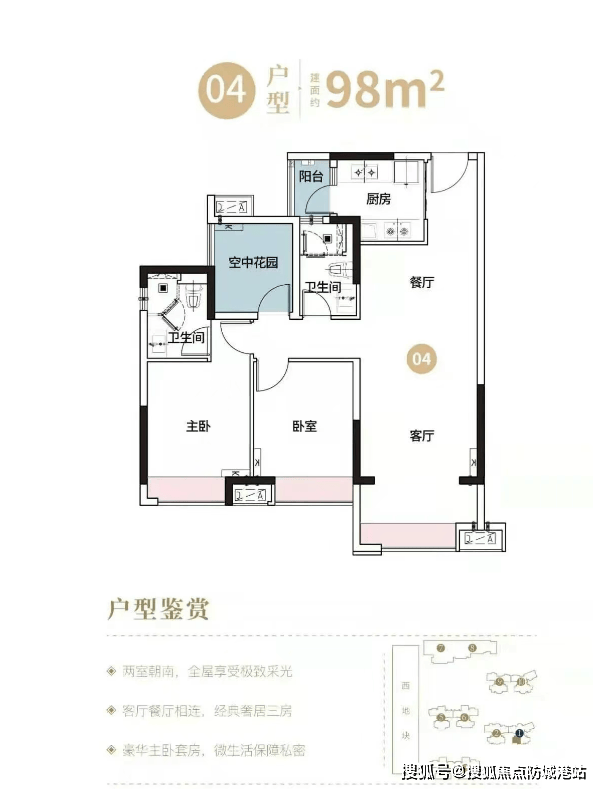 项目坐落于佛山禅城区城北核心板块,紧邻祖庙与千灯湖双商圈辐射带,属广佛同城化前沿阵地。总规划20栋高层住宅(一、二期各10栋),采用围合式布局,兼顾采光通风与社区私密性。虽未明确公布梯户比,但从产品定位及户型分布推断,主力楼栋应为两梯四户或两梯五户设计,平衡效率与舒适度。项目整体绿化率高达约50%,远超主城平均水平,营造出低密宜居的社区氛围。按常规估算,容积率控制在3.0左右,属典型刚需刚改型社区,在保证居住密度合理的同时,最大化公共空间与生态体验。