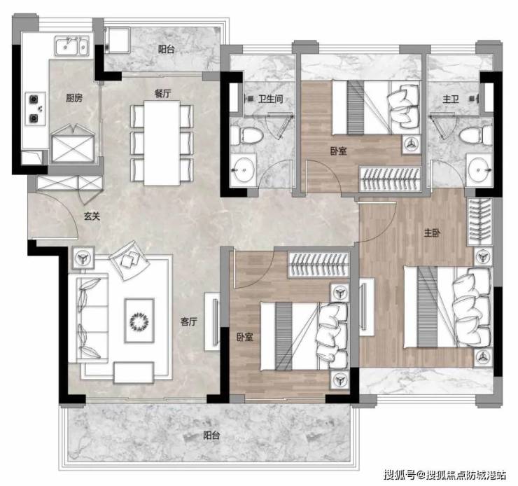项目整体规划上采用点状式布局,保证每栋无遮挡,视野开阔,高层住宅采取塔式设计,小高层住宅采取板式设计,特有的匠心设计使得大部分的户型可以达到南北对流;东南侧集中规划小高层,南向望一线湾景。