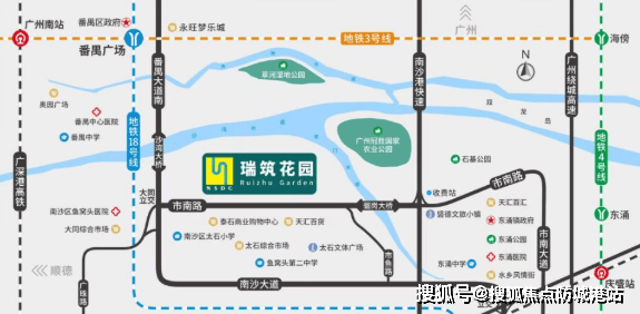 瑞筑花园位于南沙北,紧邻南沙大道、南沙港快速路,并且距离番禺桥南仅一桥之隔。项目交通便利,通过沙湾大桥可直达番禺,同时门前设有公交线路无缝接驳地铁4号线的东涌和庆盛站。此外,距离南沙港快速约1.7公里,能够快速抵达广州各区。周边配套设施齐全,包括商业、教育和医疗资源,为居民提供了便捷的生活环境。