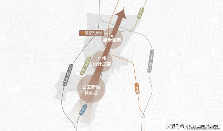 项目坐落于白云区嘉禾望岗地铁站G出口50米处,是广州中心区首个三线换乘站(2/3/14号线),3站直达白云新城,7站通达珠江新城。未来18号线北延段开通后,5站到琶洲、8站抵番禺万博,通勤效率提升50%。根据《广州市轨道交通第三期建设规划(2022-2028年)》,嘉禾望岗板块将打造为“国际科创枢纽”,2025年板块GDP预计突破3000亿元,区域价值持续攀升。