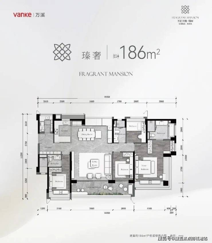 建面约186㎡户型,正南向一线花地湾河涌景观视野