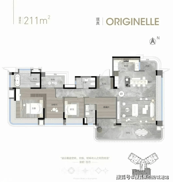 建面约196平方米和211平方米户型:南北对流,LDKB大方厅,双主套,主卧L型270度飘窗,空间体验极佳。
