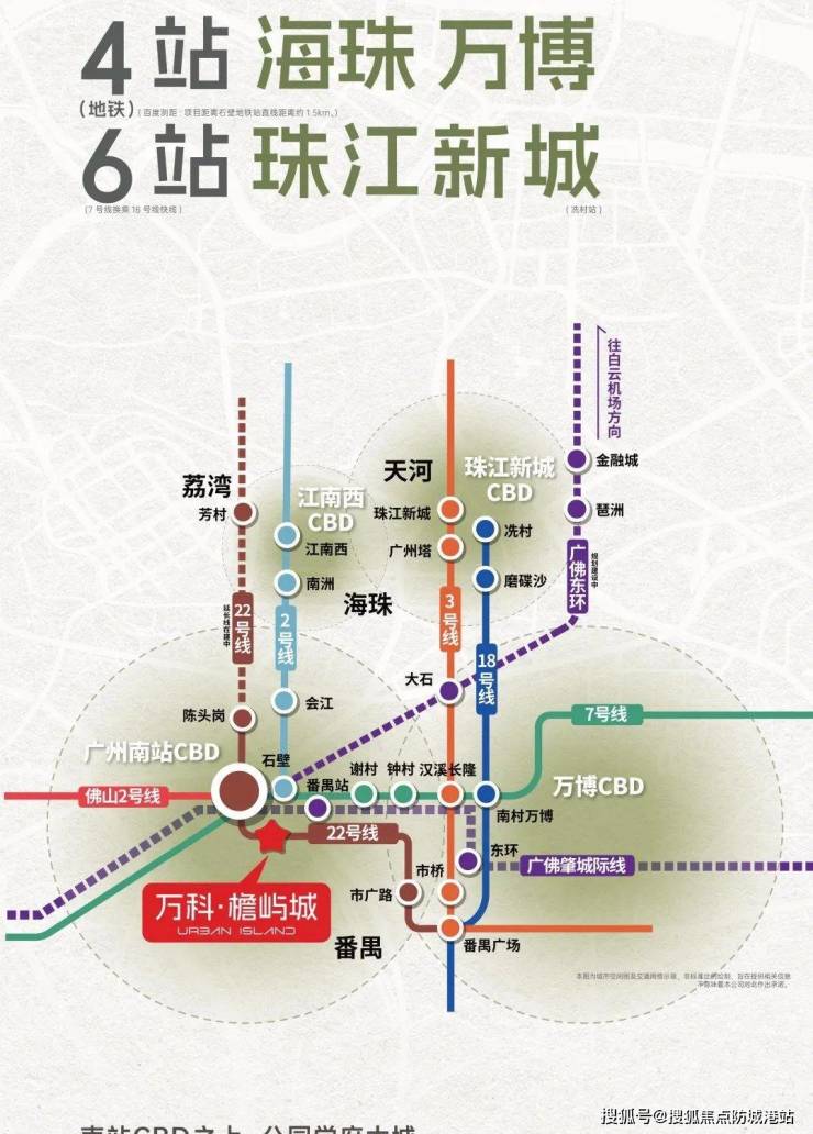 万科檐屿城地理位置得天独厚,距离广州南站直线距离仅 1.5km,这一优势使其尽享轨道交通的便捷。22 号线、2 号线、7 号线以及佛山 2 号线在此交汇,编织起一张密集的地铁网络。乘坐地铁,4 站便能直达万博、海珠,6 站即可抵达珠江新城,无论是商务出行还是休闲娱乐,都能快速抵达城市核心区域。