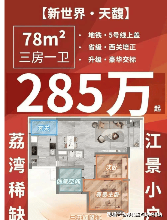 新世界天馥项目位于广州荔湾区滘口板块,紧邻白鹅潭CBD,由知名开发商新世界集团精心打造。项目占地面积未明确公布,但总建筑面积较大,并且配备了约4.3万平方米的社区商业设施。项目主打小户型房源,总价控制在300万以内,适合预算有限的家庭选择。小区共有6栋楼,半围合式分布,特别设计了45度“风车”户型联排,确保主要室内空间朝南向布局,特别是卧室空间几乎做到了100%朝南,极大提升了居住舒适度。