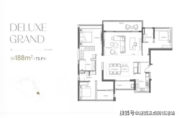 中国铁建·西派云峰主力户型为建面约188平方米的四房两厅三卫,以及部分更大面积的楼王户型。我们以主力户型为例,进行官方权威解析: