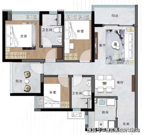 135㎡户型:豪华景观阳台,南北对流,全明设计,享受极致居住体验。