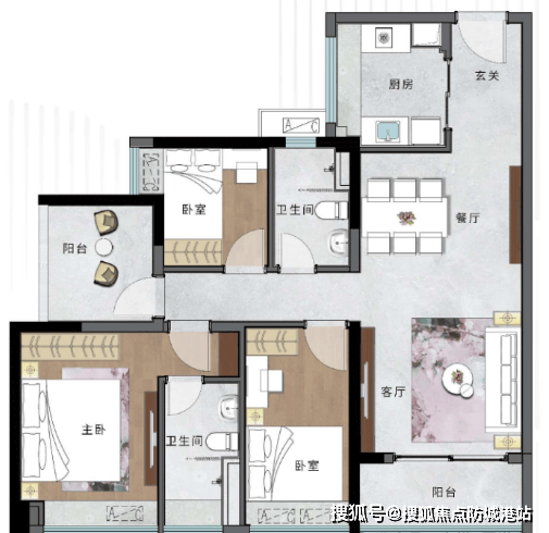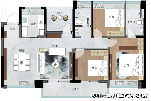 98㎡户型:三加一房设计,卧室全飘窗设计,提升居住舒适度。