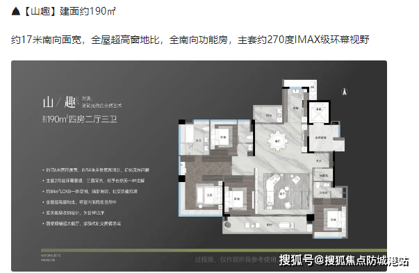 项目占地面积30643平方米,包括3栋19层小高层和11栋4层高的合墅。主打户型为建面约190㎡的大平层及建面约210㎡的合墅。其中,合墅产品本身便是稀缺资源,注定将成为市场上的抢手货。此外,项目还特别推出了250㎡的临湖大平层,拥有三面通风采光和绝佳位置景观,进一步提升了居住品质。
