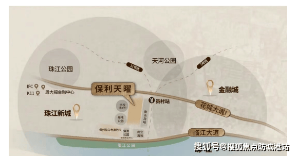 保利天曜地处广州核心金融区,紧邻华南快速干线、黄埔大道中、临江大道等主要交通线路,出行十分便利。项目距离地铁5号线与11号线的交汇站——员村站仅约900米,步行大约需要15分钟。未来随着11号线的开通,将直达琶洲和天河CBD,极大提升了交通便捷性。此外,周边配套设施齐全,包括K11、天德广场等高端商业设施,以及中山大学附属第六医院等医疗资源,生活氛围浓厚,具有较高的性价比。