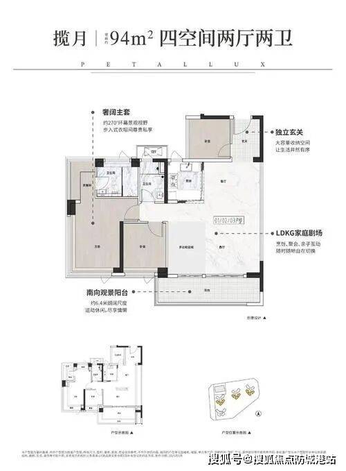 信达繁花里主打75至108平方米三至四房高使用率户型,设计理念注重空间灵活性和功能实用性。75平方米户型可实现三房两卫,南向四开间布局设计让客厅、卧室和阳台采光通风均衡,主卧配备270度环幕飘窗,提升空间舒适度。94平方米户型采用LDKG一体化设计,6.4米阳台与客厅连通,为家庭生活提供宽敞活动空间,功能布局灵活可调。
