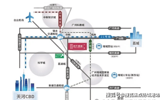 时代倾城位于增城区中新板块,距离黄埔仅 1.5 公里,地理位置得天独厚,能便捷享受黄埔的发展红利。交通配套方面,项目距离地铁 21 号线中新站约 1.7 公里,可通过如约巴士或公交快速接驳,轻松搭乘地铁出行。未来交通优势将进一步凸显,增天高速预计 2025 年通车,建成后到天河核心区仅需 20 分钟左右;目前花莞高速已通车,可快速直达知识城、科学城等区域,无论是日常通勤还是跨区出行,都十分高效。