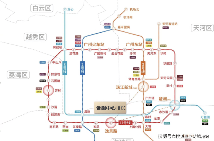 A: 根据官方数据,项目位于广州市海珠区中大国际创新生态谷核心,距离在建11号线逸景路站0米(地铁上盖),距离明年通车的10号线五凤站近在咫尺。自驾出门即主干道,5站直达珠江新城、琶洲,交通极为便利。