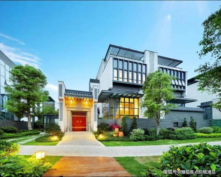 把宅院大门、花格窗、青石雕刻等传统的岭南元素与现代建筑、自然环境完美融合,打造中国特色的岭南院墅。