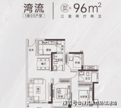 建面约95㎡:南北对流双阳台设计,主卧朝北,最低总价约160万起,适合预算有限的家庭。