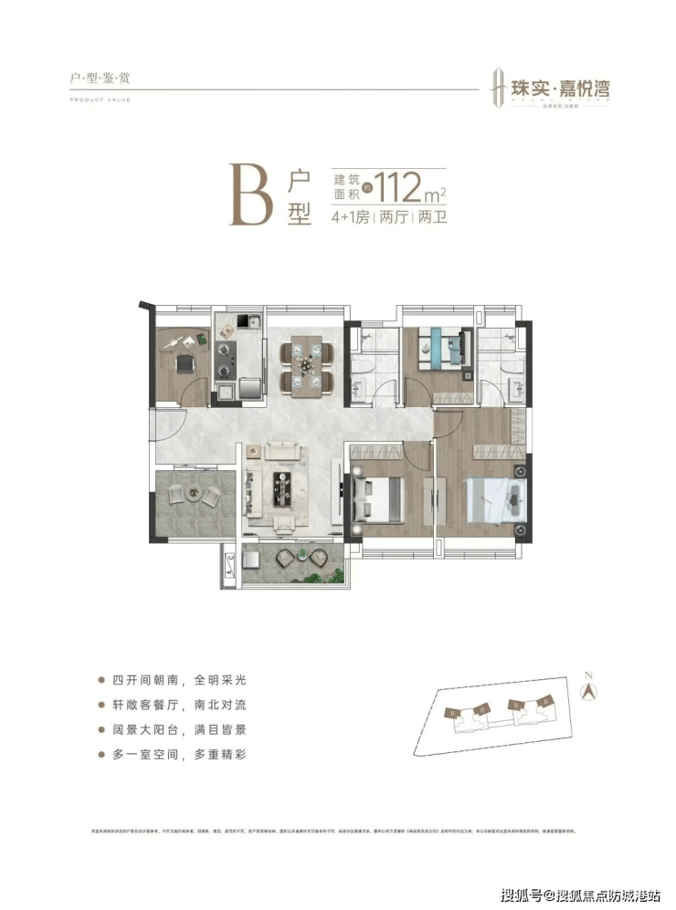 珠实·嘉悦湾主打建面约89㎡3+1房与112㎡南北对流江景五房,均采用全南向布局、2梯4户配置,通风采光俱佳,同时凭借灵动空间设计,实现实用性与舒适度的双重提升,堪称市中心绝版改善户型。
