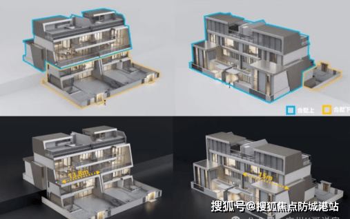 错层设计:上下叠做了错层设计,因此上叠、下叠均有四层,并且各自有天有地,难得的是,上下叠的入户方向也做了错开设计——下叠南向入户、上叠错层北向入户。