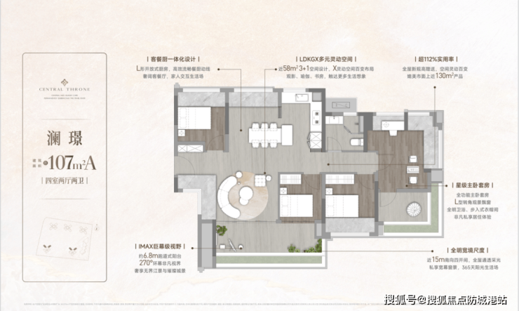 户型:90㎡、1125㎡、39㎡、 140㎡、143㎡、223㎡,部分户型拥有南北双面270°环幕望江景,景观视野极佳。