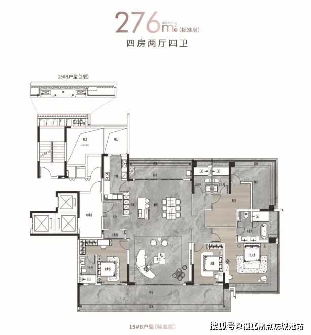 约125㎡,虽是项目入门级户型,但品质感丝毫不输大面积产品。
