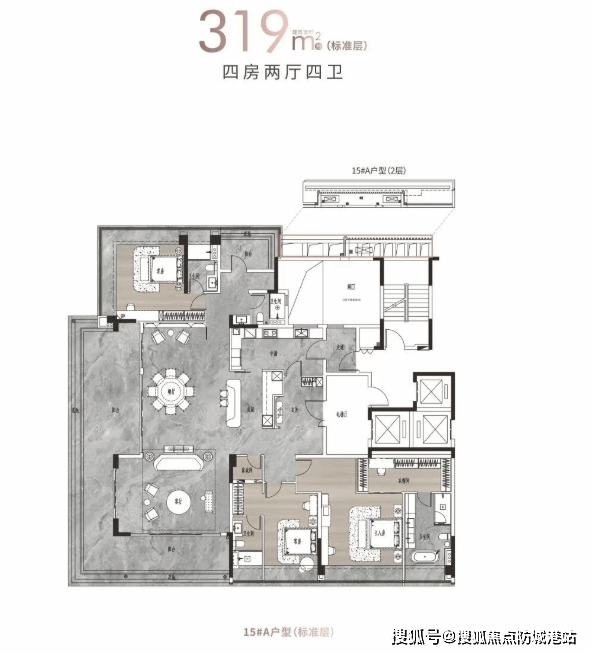 项目提供的户型面积范围广泛,从约125-142㎡四房两厅两卫到214-313㎡大平层不等。所有户型均采用南向设计,确保每一户都能享受绝佳的观江视野。其中,125㎡户型拥有四开间朝南+约17㎡的巨幕阳台,而142㎡户型则配备了入户花园及豪华主卧套间。