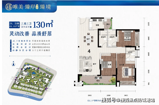三期【臻境】压轴新品是项目的亮点之一,推出建面约 98㎡和 130㎡两种户型,均秉持 “实用主义奢宅” 理念。建面约 130㎡户型采用科学动静分区,6.7 米南向阔景阳台可将社区央景引入室内,双套间设计让家人实现 “独立卫浴自由”,满足品质生活需求;建面约 98㎡三房两卫户型则有 “小家变大” 的优势,约 4.2 米宽境客厅带来开阔空间感,“四开间朝南” 形成 10.9 米南向面光,充足采光让居住更惬意,两种户型一经亮相便引高度关注,延续红盘势头。