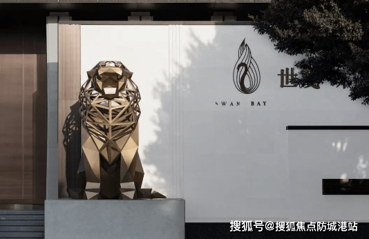 世茂天鹅湾的建筑设计独具匠心,融合了现代先锋审美与前沿建筑理念。其外观线条流畅,造型简洁大气,展现出一种时尚、动感的美感。大门气势恢宏,创中国最大电动铜门记录,金属狮子坐镇两侧,尊贵感十足。门头两侧的狮子高3.5米,造型现代,仿佛在守护着这座奢华的府邸。