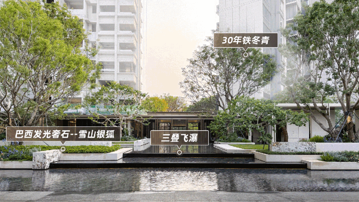 3、小区配套尽显豪宅级品质。五进归家路线营造出尊贵的归家仪式感,对标宝格丽酒店标准的超级泛会所更是提升了社区的高端氛围。社区门楼约12米的巨幅照壁震撼人心,整体抬高设计下穿环路,连通负一层停车场和首层园林,实现人车分流与双层归家,在满足功能需求的同时,极大地提升了业主的归家体验。项目规划约7.2万平超级中央园林,已开放的实景园林展现出CBD中宁静与松弛的气质。夜幕降临,水景两侧巴西奢石在灯光下跳动的银与背景叠水流动的光影交织,营造出梦幻般的氛围,让居民在繁华都市中享受宁静与美好。