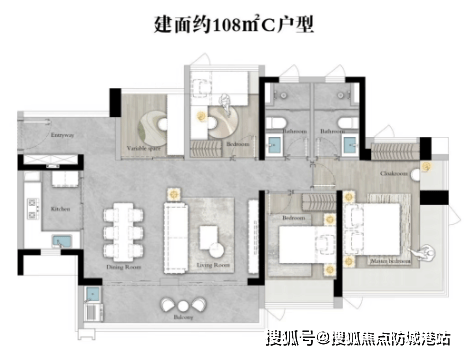 108㎡四房两厅两卫:宽敞舒适,适合大家庭或追求更高生活品质的家庭。