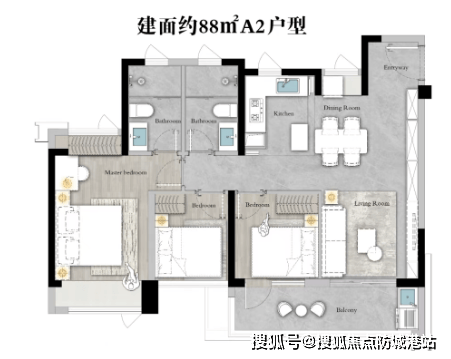 88㎡三房两厅一卫:紧凑实用,适合小家庭。