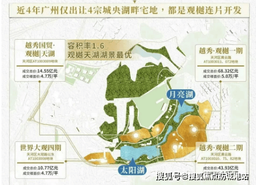 绝版湖山资源:位于天河核心区,拥有双湖(太阳湖、月亮湖)及三面环山的天然景观,是广州罕见的城央低密湖居地。