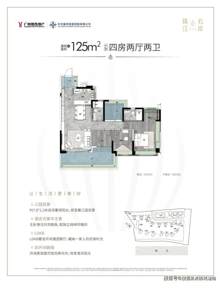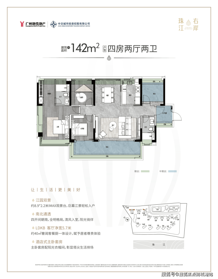 四开间朝南,主卧还采用南北对流设计,观景阳台长达近8米……