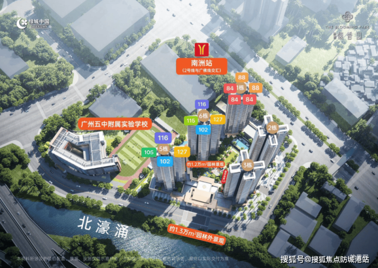 首先是江园双景楼王,景观视野无遮挡;离南洲路主干道最远,会更安静,5号楼在所有楼栋中日照时间也相对较长;五号楼旁边就是五中附属实验学校,站在窗台能目送孩子上学;低楼层能看四季花汀滨水公园,高楼层远眺后航道江。